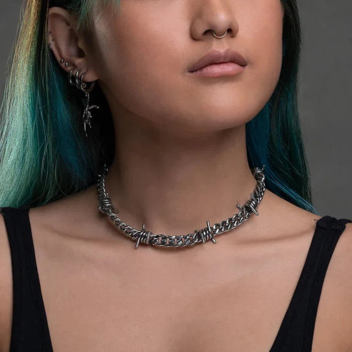 The Asgard Barbed Chain Necklace combines rugged design with raw elegance. Featuring thick interlocked links and barbed accents, it's a bold statement piece for those who embrace a fearless style.