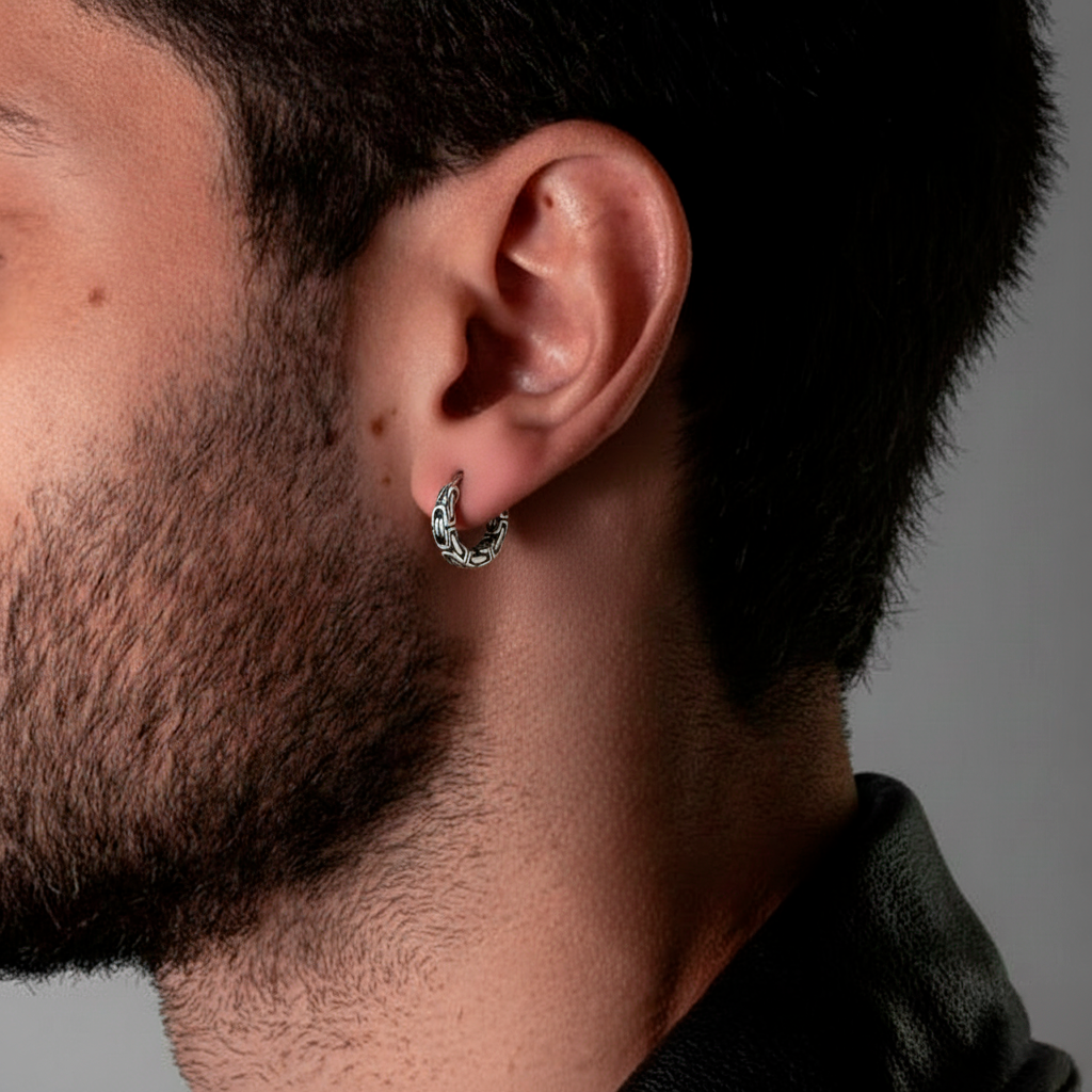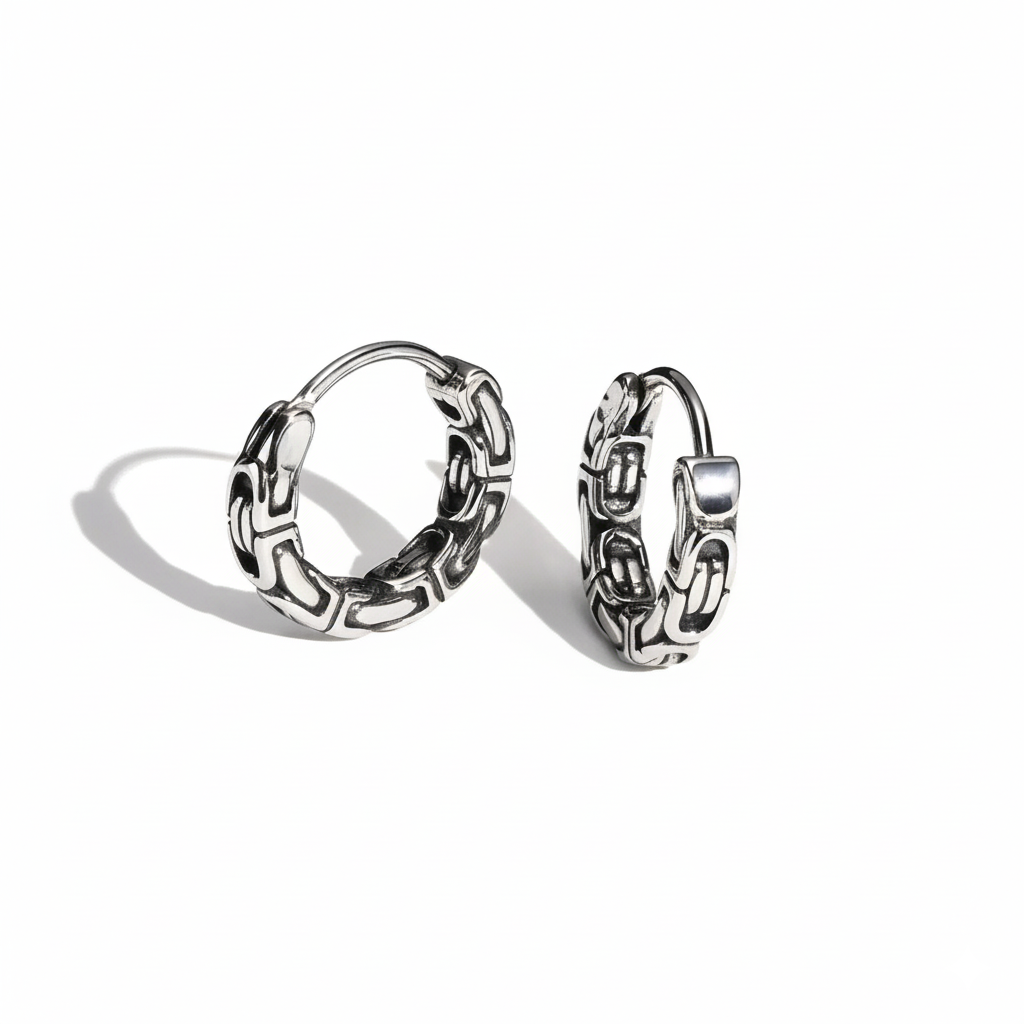 The Braided Link Hoop Earrings fuse timeless craftsmanship with modern strength. Their interwoven design represents unity, resilience, and the balance between elegance and power.